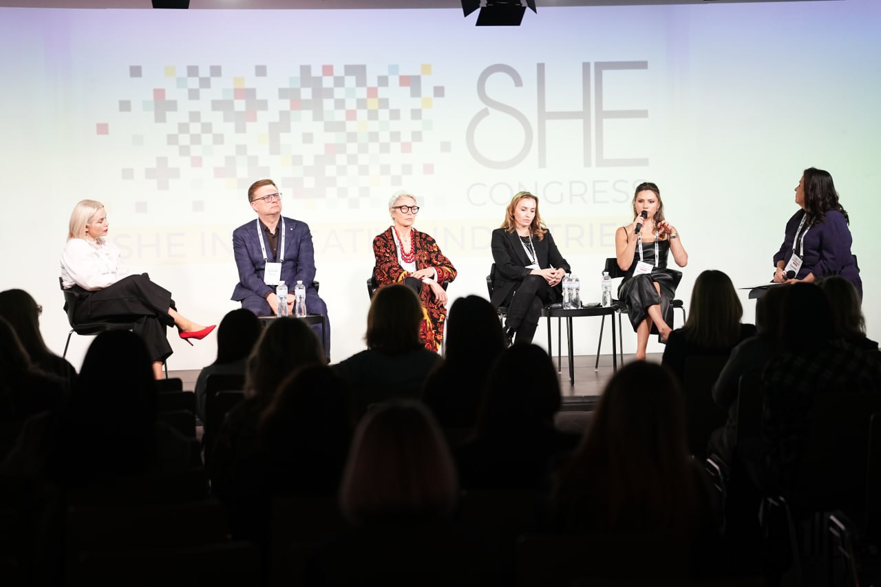 А She in Creative Industries за модерації Іванни Слабошпицької («КИЇВ24») зібрала лідерів медіа та дизайну. Влад Іваненко (Playboy), Антоніна Хижняк (заслужена артистка України), Ірина Метньова (Vandog Agency), Світлана Терещенко (BORISTENE), Анна Мачух (ОМКФ) поділилися досвідом розвитку проєктів та виходу українських брендів на міжнародний ринок. А Тетяна Коровіна («Молокія») розповіла, як креативні рішення надихають жінок на сміливі ідеї та нові проєкти. «Найгірше, що може зробити для себе жінка у креативній індустрії, бізнесі, побуті, загалом у своєму житті, це перестати пробувати нове» – зауважила Тетяна.