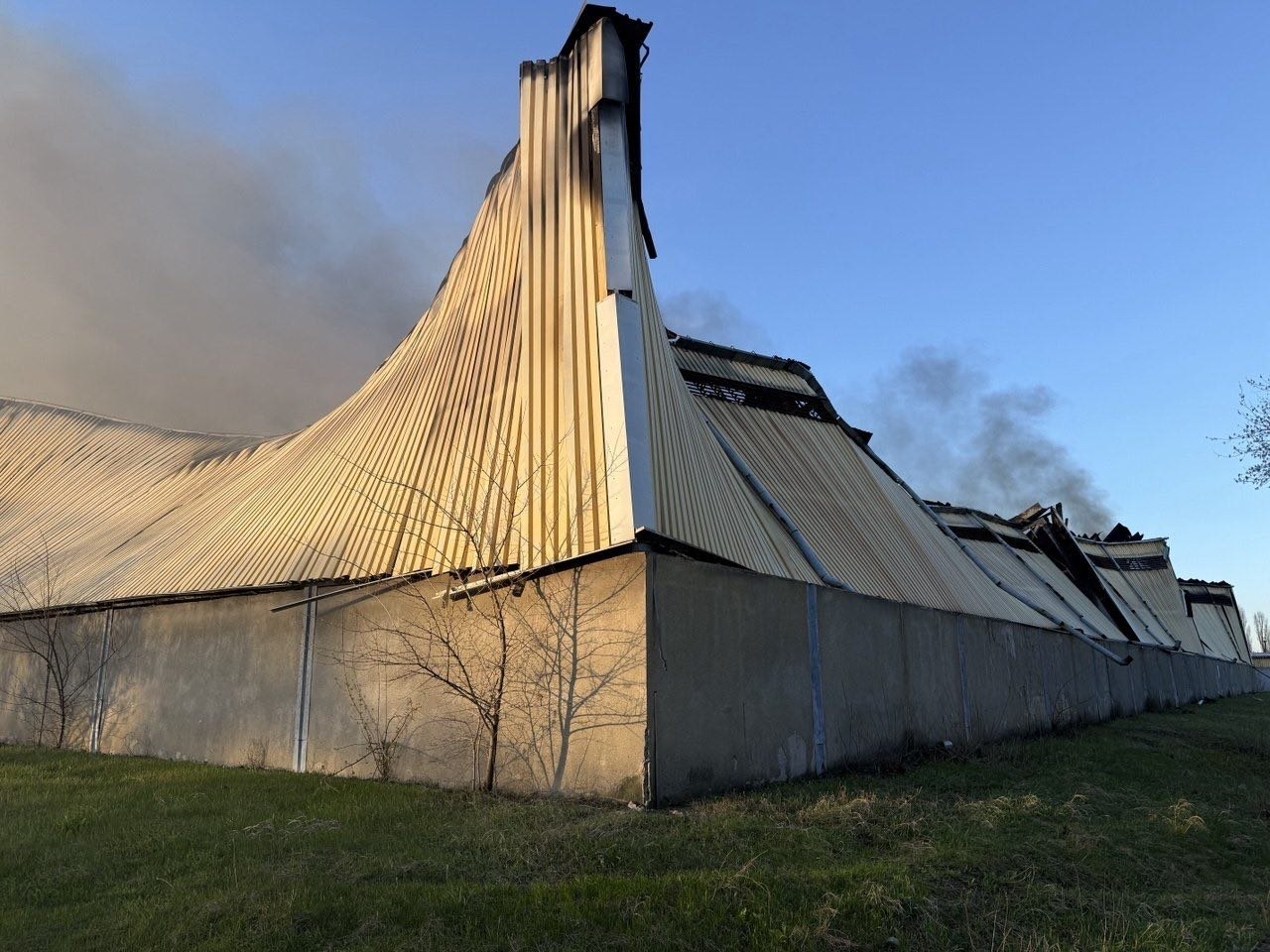 За попередньою інформацією, знищено близько 5,5 тис. м2 складського комплексу.