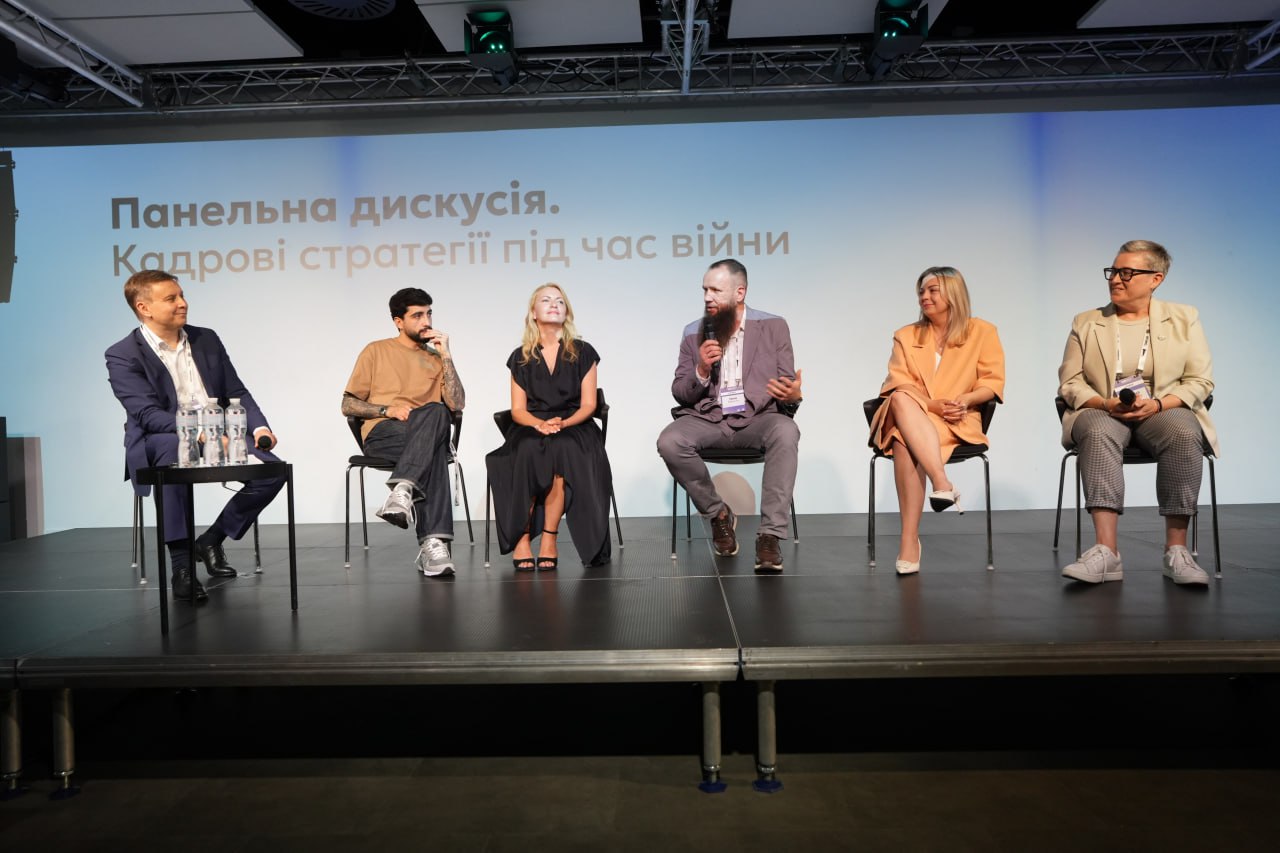 Першу панельну дискусію про кадрові стратегії під час війни модерував Ігор Кабузенко (Ward Howell Ukraine). Участь брали Юлія Тітуренко (банк «Південний»), Лілія Дубас (Teva в Україні), Поліна Карєліна (Nestlé в Україні), Вюсал Талибов (Foundation Coffee Roasters) та Іван Афонін (ПриватБанк). Обговорили інтеграцію молоді, ветеранів і кандидатів 50+ та розвиток внутрішніх талантів як ключові чинники успішного управління командами.