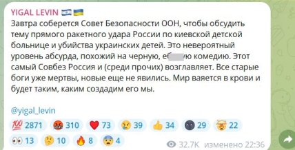 Увівторок, 9 липня, Рада безпеки ООН збереться на засідання через російський удар по дитячій клініці “Охмадет” у Києві. Іронічно, але поточним головою Ради безпеки є Росія.