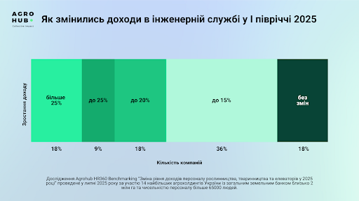 Агрономічна служба демонструє найвищі темпи зростання доходів серед ключових категорій персоналу: 81% компаній підняли оклади агрономам на 15–25%.