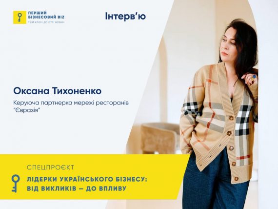 У межах спецпроєкту «ЛІДЕРКИ УКРАЇНСЬКОГО БІЗНЕСУ: ВІД ВИКЛИКІВ — ДО ВПЛИВУ» бізнес-видання «ПЕРШИЙ БІЗНЕСОВИЙ» поспілкувалося з Оксана Тихоненко — керуючою партнеркою мережі ресторанів «Євразія».
