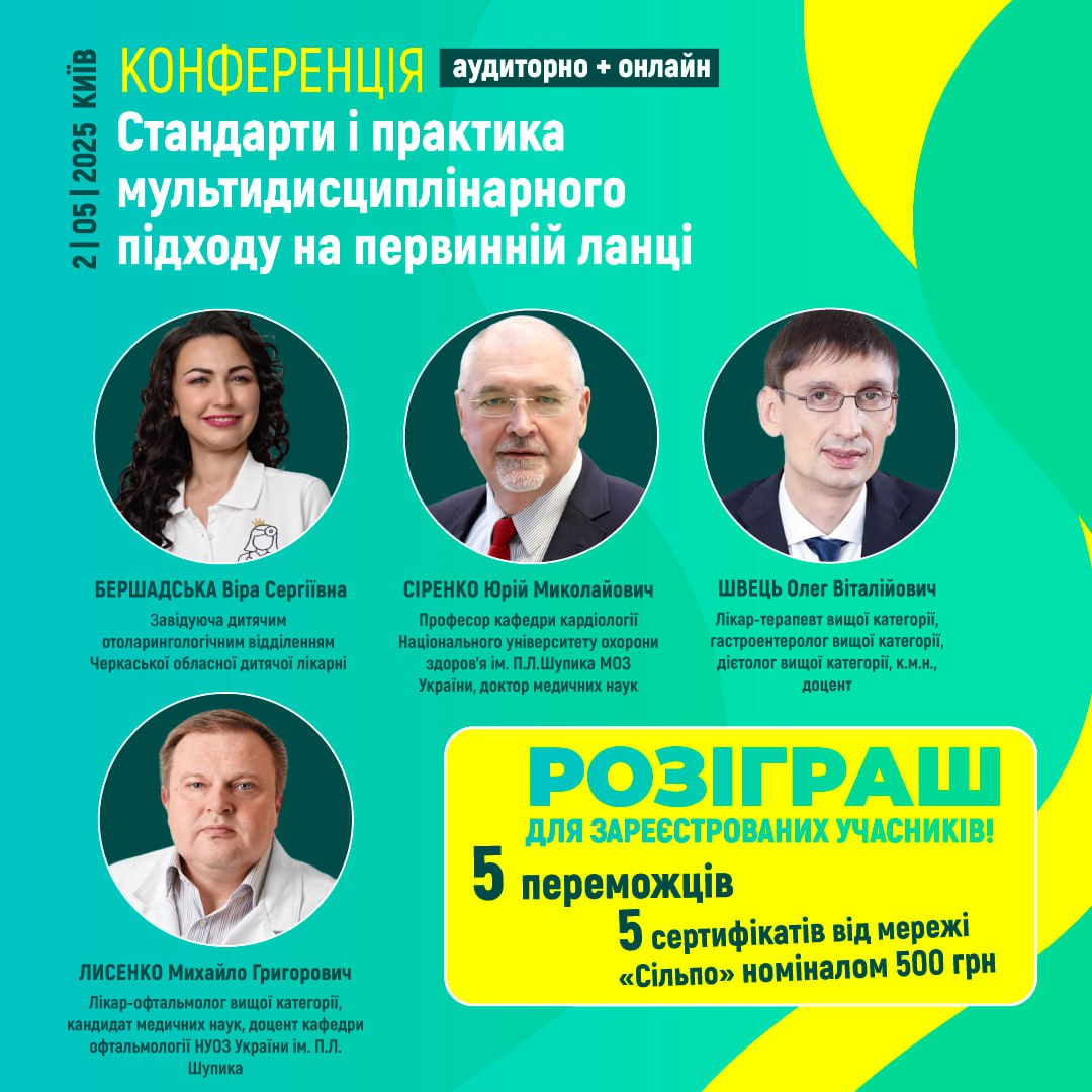 2 мая 2025 г. в Киеве состоится профессиональная медицинская конференция «Стандарты и практика мультидисциплинарного подхода на первичном звене», посвященная новым подходам в системе первичной медицинской помощи. Событие будет проходить в гибридном формате: офлайн и онлайн. Участие в онлайн-трансляции — бесплатное.