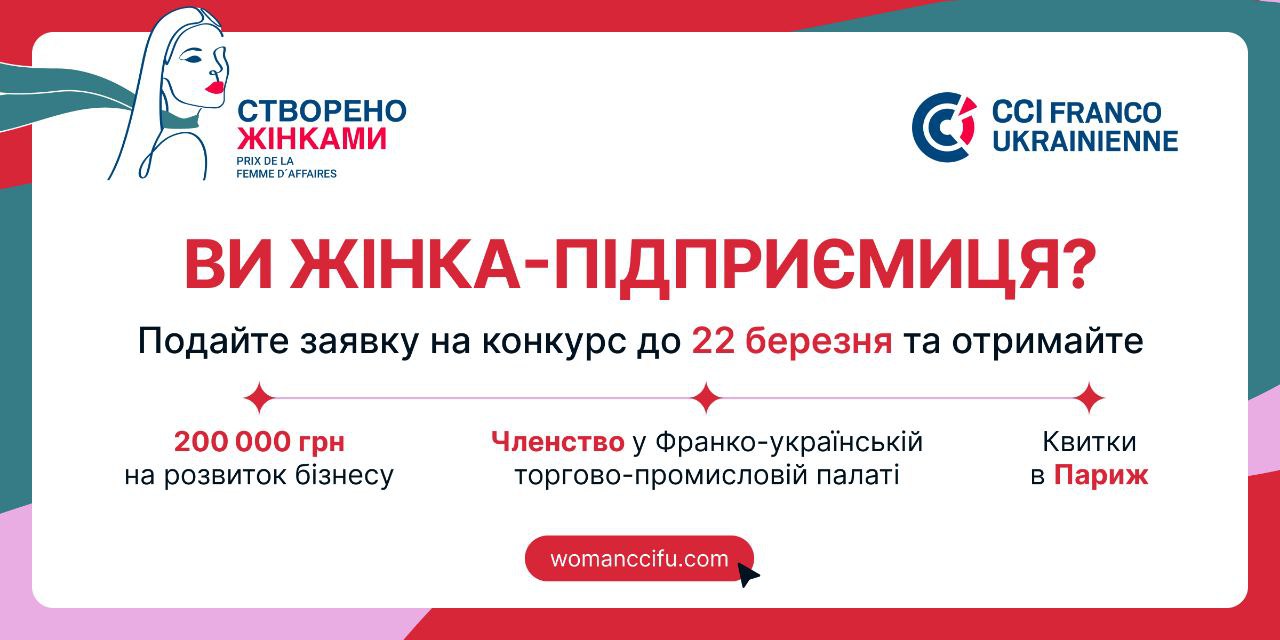 2 февраля стартует прием заявок на 8-ю Премию «Создано женщинами» – социальную инициативу Франко-украинской торгово-промышленной палаты, которая с 2019 года открывает для участниц новые возможности развития бизнеса. Конкурс призван поддержать предпринимателей, работающих в условиях войны и нестабильности, одновременно преодолевая устоявшиеся стереотипы о женском бизнесе и усиливая его роль в экономике страны. Для участниц это также возможность заявить о своем бизнесе в СМИ, стать частью французского бизнес-сообщества и открыть новые партнерства и точки роста.