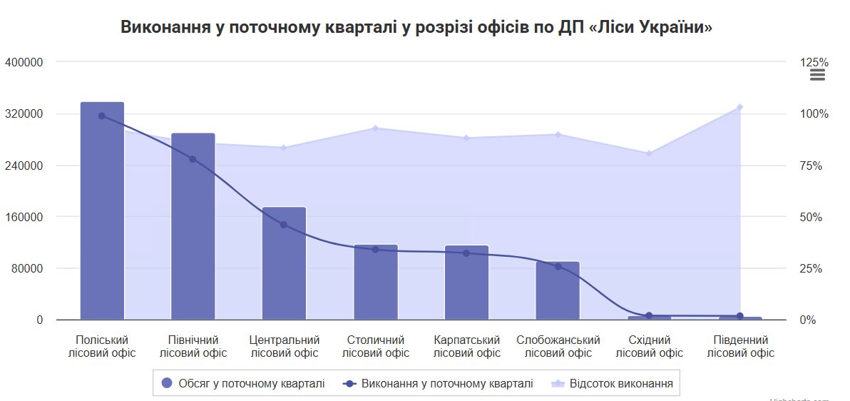 Карпатский лесной офис продал 116 918,295 м3 сырья, фактически отгружено 102 317,914 м3, уровень выполнения контрактов 88%.