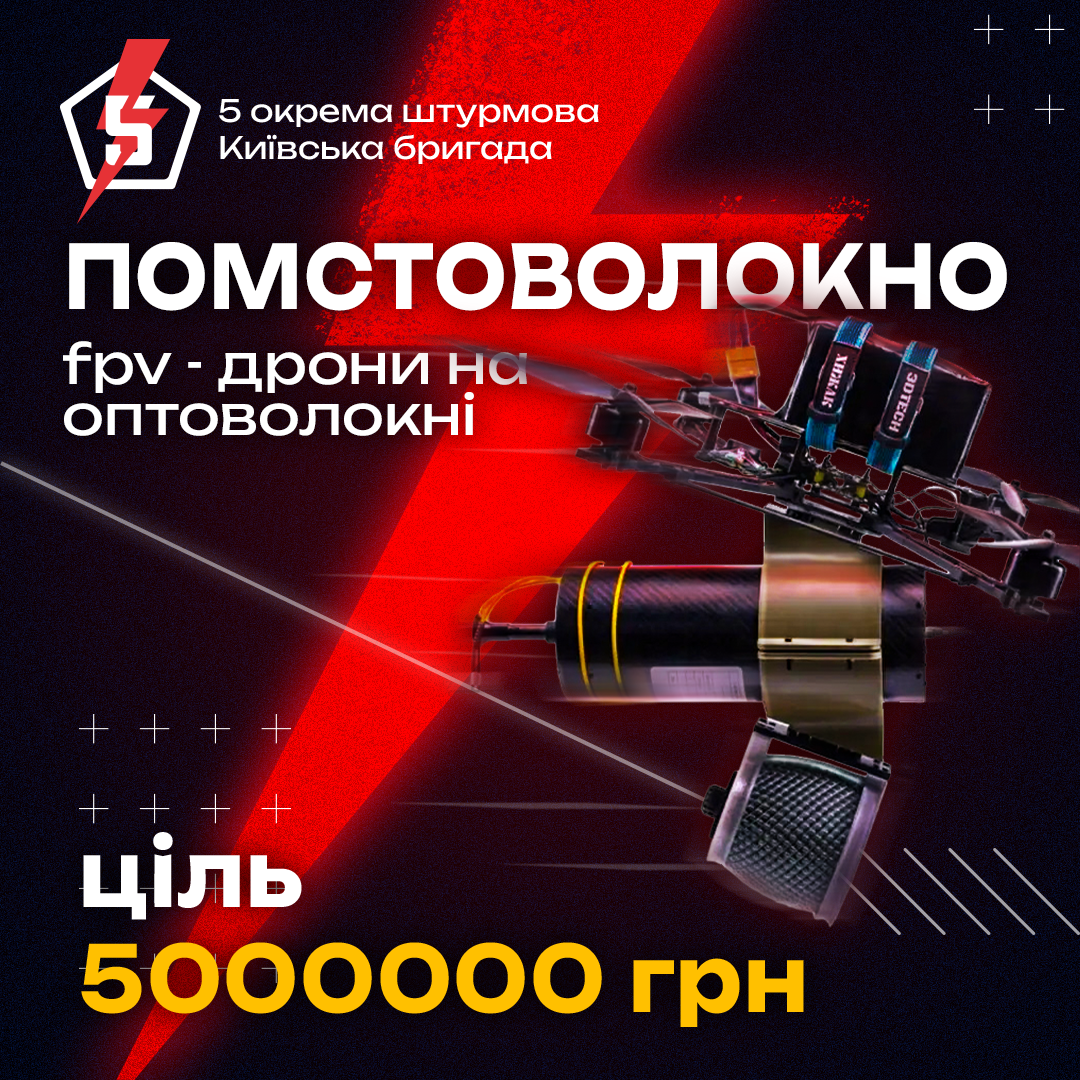22 мая 2025 года - 12:54 5 штурмовая бригада запускает масштабный сбор на FPV-дроны — “Помстоволокно”! Это не просто FPV